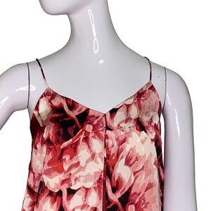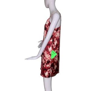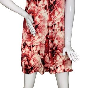 Adrianna Papell Floral Print Dress Red Pink Spaghetti Straps Full Lining Size M