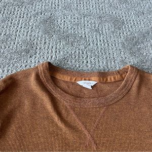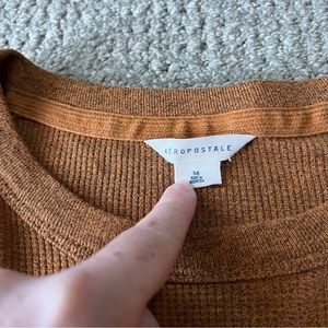 This men's Aeropostale long sleeve is NWOT, new without tags. This long sleeve is a size medium in the color burnt orange with some fibers of brown throughout. This is a great top for the fall and is great to layer with vests, jackets, or hoodies.