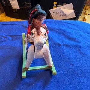 WOODEN ROCKING HORSE N BOY CHRISTMAS DECOR VINTAGE JAN 1981