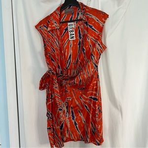 Easy mini wrap dress from Urban Outfitters in a lightweight, printed fabrication. Fitted with a surplice neckline, short cap sleeves and adjustable tie closure at the waist.