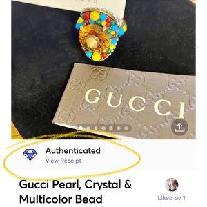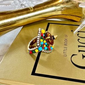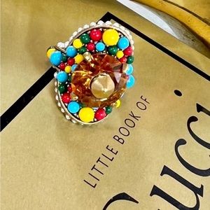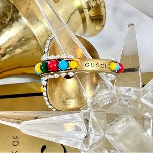 Authentic Gucci Pearl, Crystal & Multicolor Bead Embellished Cocktail Ring….