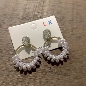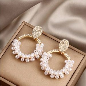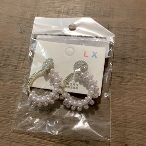 Gold, Pearl, and rhinestone hoop stud earrings. New with tags, never worn! Purchased to go with a bridesmaid dress but went with a different option!! Super cute! đź’Ť Perfect for bridal events!! *PERFECT FOR A TAYLOR SWIFT CONCERT*