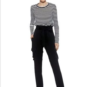 A.L.C. Combo Navy Stripe Open Back Tee Shirt Long Sleeve Linen