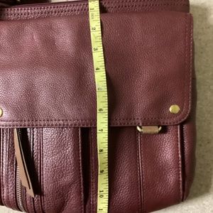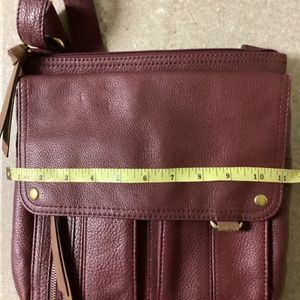 Fossil bag in ox blood red. Tons of organization. 4 different entry pockets. Minimal wear. Adjustable strap.