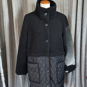 Super fun plaid top in pink, purple, gray, and white stripes. Fringe on bottom and on sleeves makes this top unique. Size XL. See materials and measurements in photos. Very good pre-loved condition. Smoke free and pet free home.