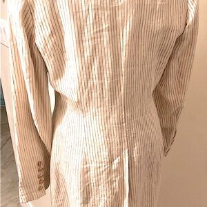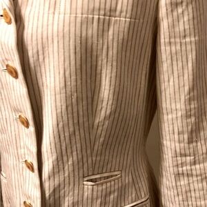 Vintage J Peterman 💯% linen Equestrian style long jacket. One of a kind. Fully lined. All original buttons on front and sleeves. Neutral color stripes. Beautiful jacket. Premium custom tailored. Steam or press and wrinkles, (characteristic of linen) - are gone - perfect! Never worn.