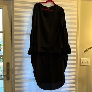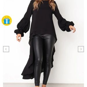 Black ladies blouse shorter in the front and longer in the back. Black size L