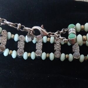 This beautiful silver over top is all the accessories you need . The silver lame threading is throughout this exceptional top. scalloped at the bottom and a 3 button closure at the neck. Delicate,sexy, and lightweight. Wear this over any cami,and make heads turn. Pictures do no justice. Please contact me if you need more details