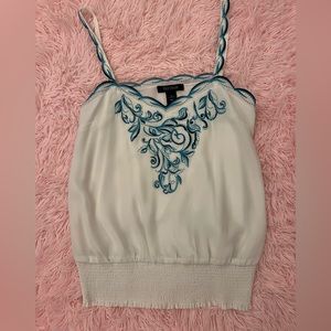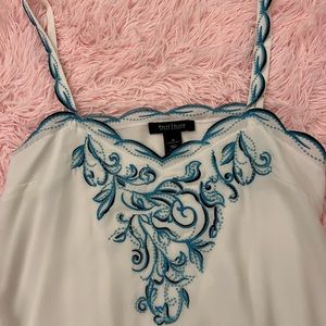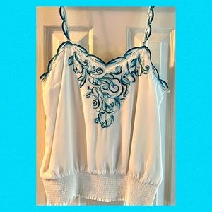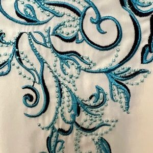 WHITE HOUSE BLACK MARKET White with Turquoise Embroidered Flowers Top
