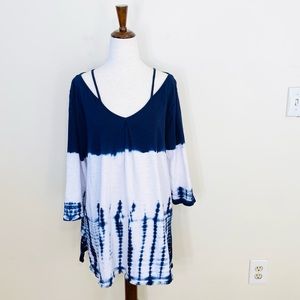 UMGEE tie dye fringe accent 3/4 sleeve top size large