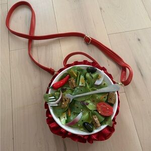 100% cotton, a little see through, lightweight knit, has frayed accents(came this way) has pilling, good preloved condition