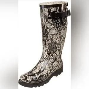 CHOOKA brand rain boots in excellent condition with a cream and black lace design- “Lacey Lace”. Only worn a handful of times. Original box, but the box is slightly broken.