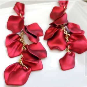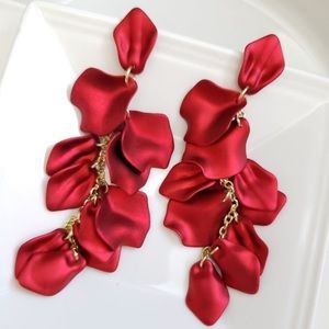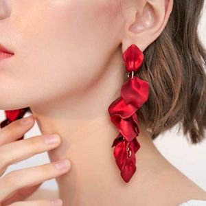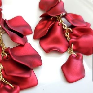 Floral Elegant long red rose petals tassel drop dangle bohemian Statement Earrings