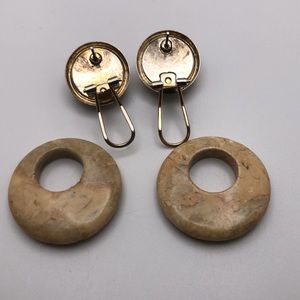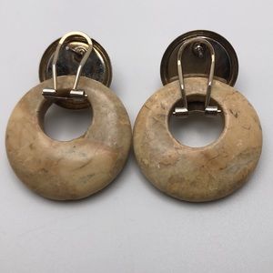 Vintage 80’s polished stone door knocker interchangeable hoop earrings in gold tone setting. The lower part can be removed so you can also wear them as studs! It’s like having two pairs of earrings in one. Reminds me Jasper.