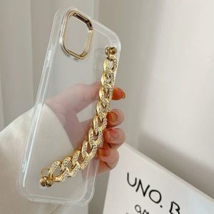 NWT IPhone 13 and IPhone 13 Pro Max Clear Case with Gold Bling Chain Hand Strap