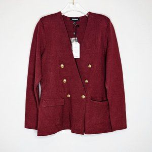 Express Burgundy Double Breasted Cardigan Long Sleeve V-Neck Size L NWT