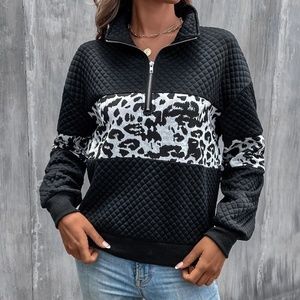 Leopard Print Oversized Color Block Sweater Top