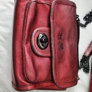 Red And Washed Black Coach Bag Comes with Coin Wallet! in Good Condition.
