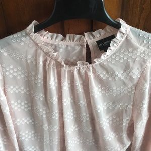 Liz Claiborne blouse. Rose color with inside shell. Very flowy. Wrists have elastic in them. Button on back.
