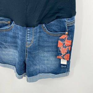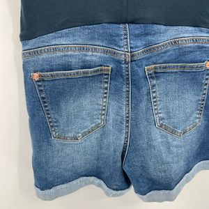 Indigo Poppy maternity denim shorts.