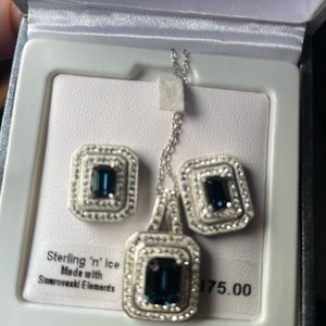 NWT Sterling 'n Ice Necklace and Earrings. Blue. Made with Swarovski Elements.