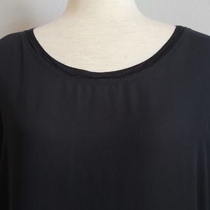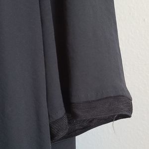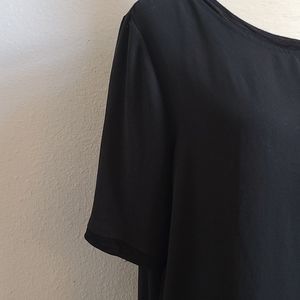 Great looking and great used condition woman's top. Different fabric on edges of sleeves and bottom (mesh like) Short sleeves, round collar.