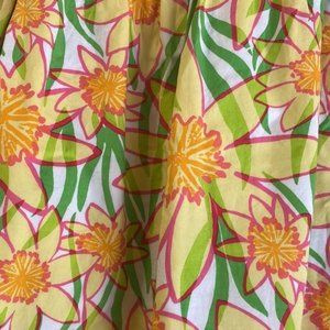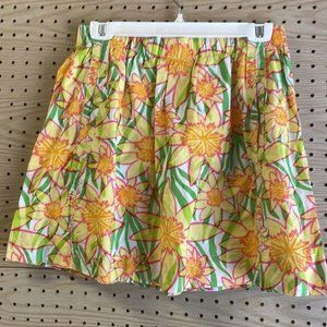 Lilly Pulitzer 100% cotton Yellow Floral Print Stretch Waist Skirt