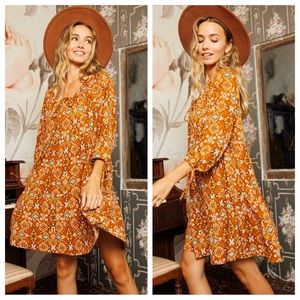35 Bohemian Quarter Sleeve Tie Front Dress