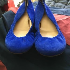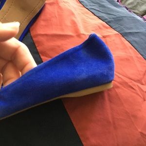 Super cute J.Crew Emma scrunch flats in blue suede size 7. Worn a bit but in excellent shape. Bright jewel tone blue color.
