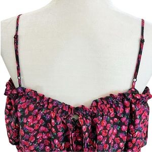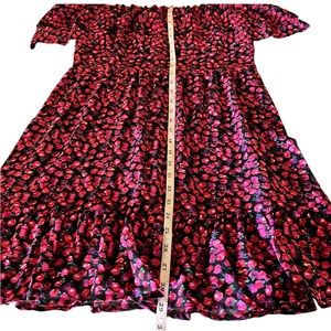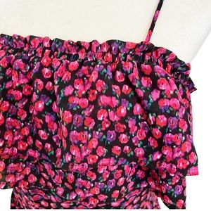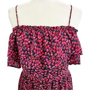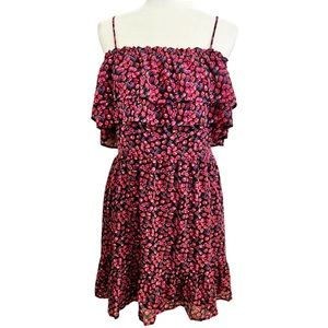 WAYF Daria Off Shoulder Ruffle Dress Berry Ditzy Large.