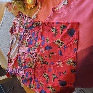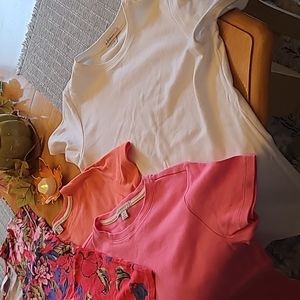 New without tags, all size small, no flaws or blemishes, heavy quality cotton t shirts Isaac is known for. The solid shirts are all cotton. The floral is cotton, modal, spandex blend. This is a phenomenal deal for five of these brand shirts. You get white, gray, pink, coral, and floral.
