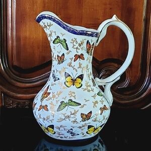 Beautidul Pear-shaped body, narrow neck and flaring mouth rim. Some of flora & fauna depicted are lily plants & 🦋 butterflies.