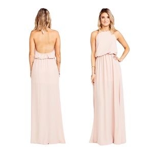 Brand new MuMu wedding SMYM halter top subdued pink blush full length poly maxi dress.