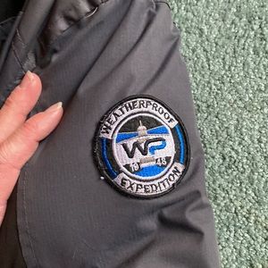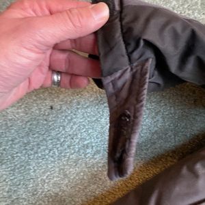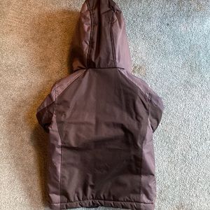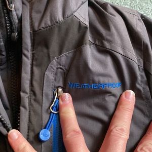 Grey/black/blue warm winter coat. The Velcro on the sleeves is not sticking. But otherwise good condition.
