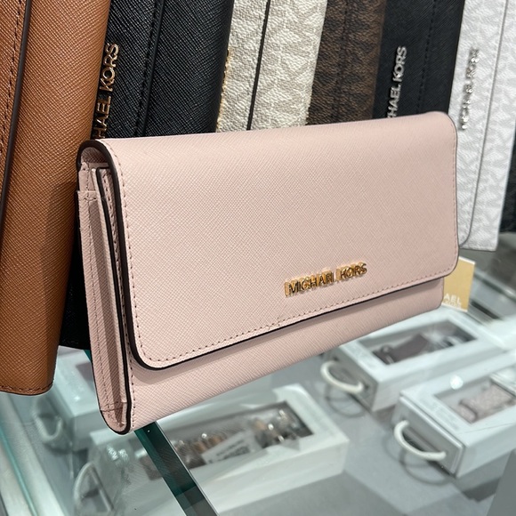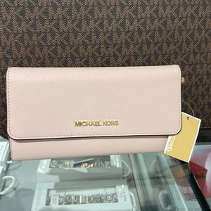 MICHAEL KORS JET SET TRAVEL LARGE TRIFOLD WALLET POWDER BLUSH COLOR