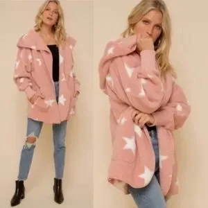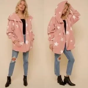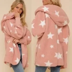 Cozy Star Print Teddy oversized hoodie Jacket