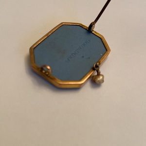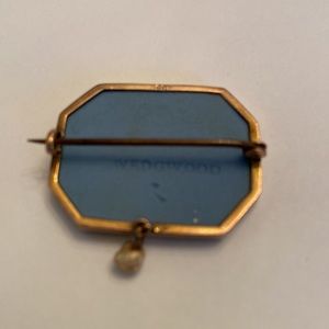 Questions? Leave a comment below! 9ct marked on upper back on brooch - English and other countries mark for 9 karat gold. See photo. Marked Wedgewood. Image is loose version of the Triumph of Cybele, except when the scene is peopled by putti or cupids instead of their rightful figures, they are usually seen as geniuses (genii). (Cited from: https://www.antiquers.com/threads/wedgwood-blue-white-trinket-box-greek-roman-mythology-lions-horses-cherubs-angels-and-more-help-id.28688/)