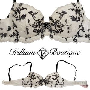 Victoria's Secret Dream Angels Lined Demi Embroidery Bra Black & White 32B