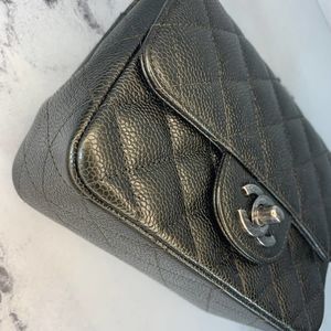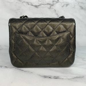 π€ Rare model bag. Chanel no longer makes square minis or caviar minis. Color is Black/grey metallic.