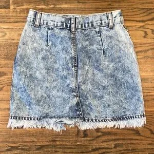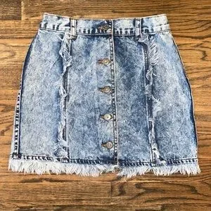 Denim mini skirt with button front and frayed details in excellent used condition!
