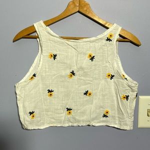 Cream colored short sleeved button up blouse. Lace material and no underlay, so you need to wear a cami underneath. Cap sleeves. So cute and feminine! Women’s size xs extra small from Aeropostale