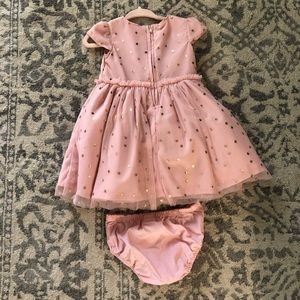 Adorable EUC dress and bloomer set. Tulle overlay with gold stars and light pink bloomers. Worn once for a birthday party.