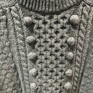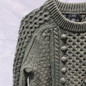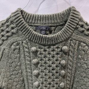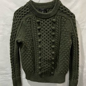 EUC J.Crew Cable Knit Pom Pom Wool Sweater Forrest Green XXS