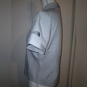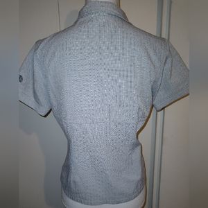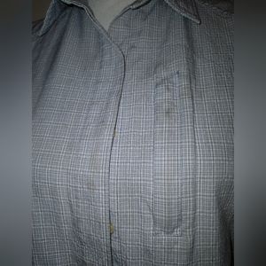 Women's plaid shirt with secret zip pocket in front. Size Medium. 36" Chest, 21" Long, 7" Sleeves. Poly/nylon. Machine wash.