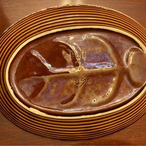 Vintage Hull Brown drip glazed pottery USA oven proof 14” well ‘n tree oval serving platter and 12” oval serving platter.