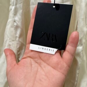 ZARA Lingerie Satin Slip Dress - Size Small - Ivory White