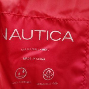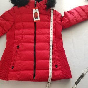 NAUTICA PUFFER COAT WOMENS MEDIUM RED BLACK FAUX FUR TRIM WATER RESISTANT NWT