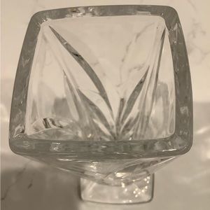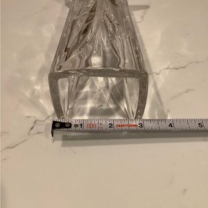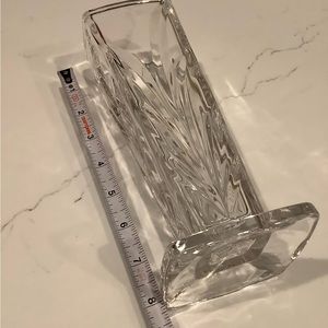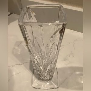 EUC cut clear glass vase. Unbranded. Beautiful alone or in a table arrangement. See photos for approximate dimensions.