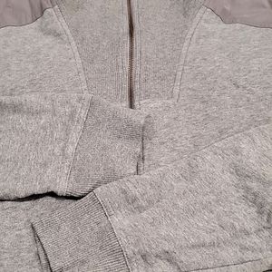 @elysium66 Hi! Most of the material is on the thinner side of a sweatshirt. The ribbed part around the neckline is thick. Hope this helps! Thank you