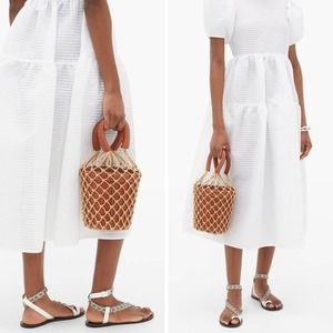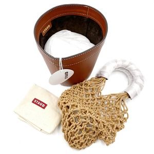 NEW Staud Mareau Cage Bucket Bag Brown Leather Tan Rope Net Double Handle